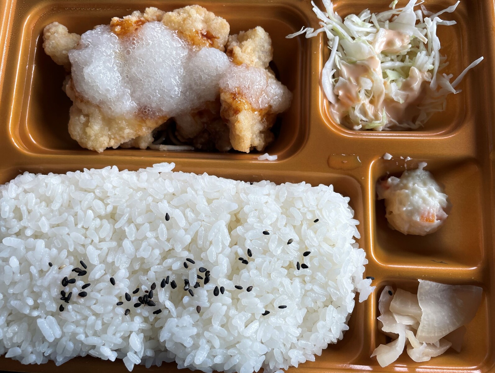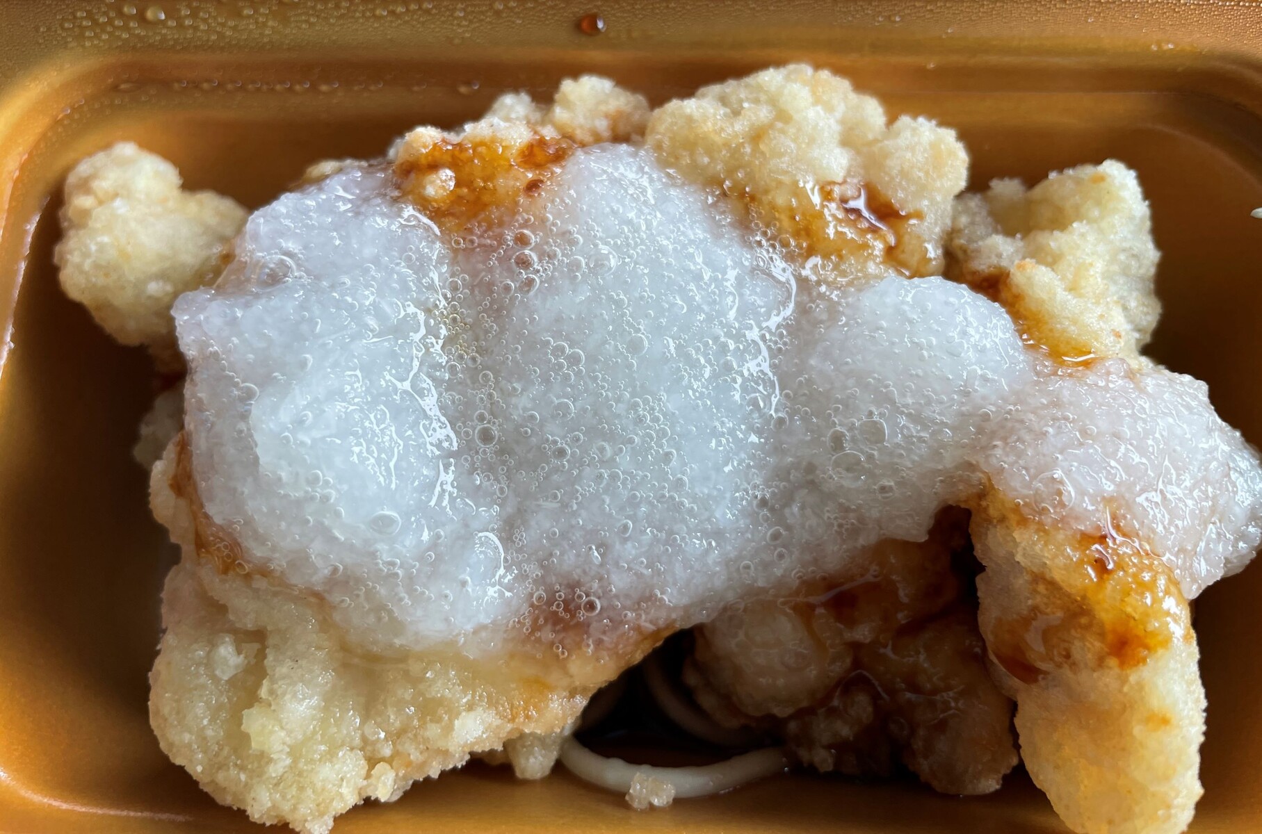 揚げたての鶏肉にたっぷりのタレをかけてさっぱり大根おろしですよ、これはごはんが進みますよね