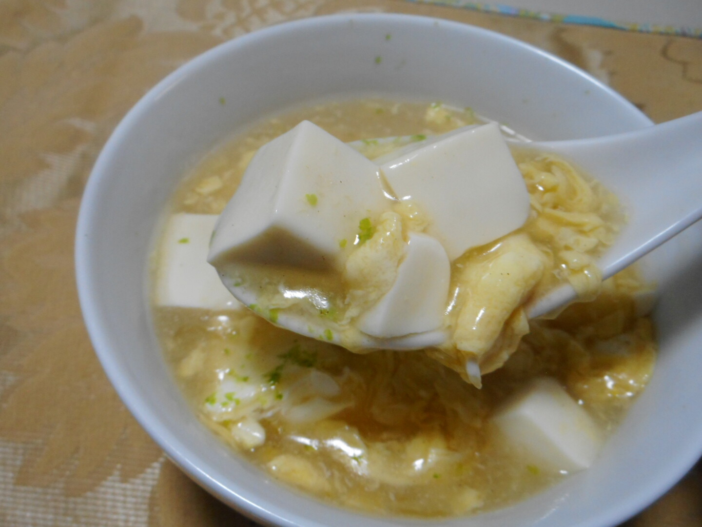 玉子でとじて生姜を多めに入れた中華風の湯豆腐は美味しかったし身体も温まりました。