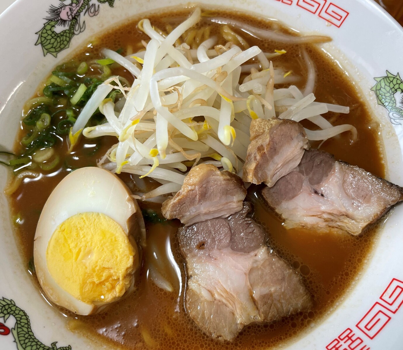 ラーメンには手作り叉焼と味玉ともやしにネギを入れました。